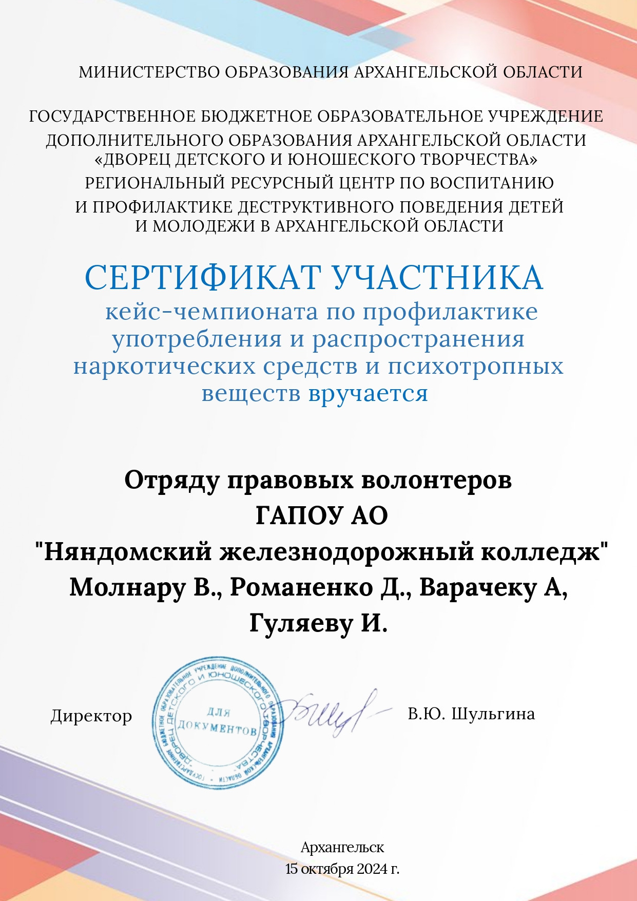 164200 Арханельская обл., г. Няндома, ул. Строителей, 23а, тел. 8 (81838) 6-40-26